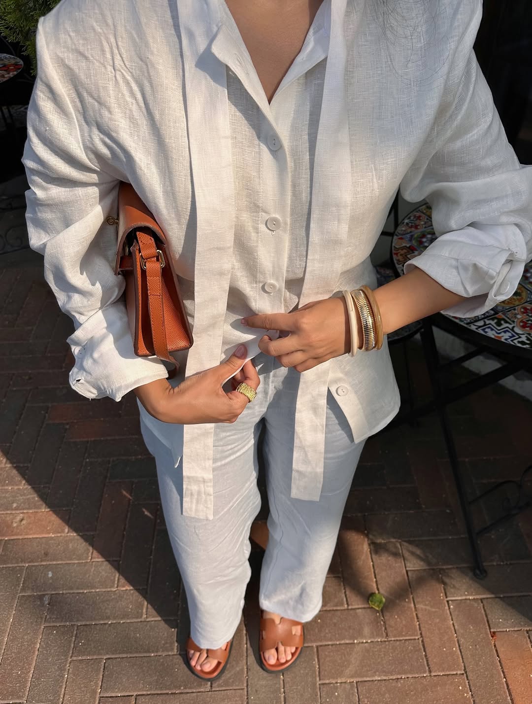 Succombez au charme intemporel de notre ensemble en lin , la pièce maîtresse pour un été placé sous le signe de la sophistication. Ce duo coordonné allie une chemise à la coupe fluide et structurée à un pantalon large vaporeux, créant une silhouette aérienne qui respire le luxe décontracté.